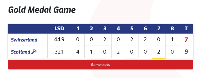Résultat du match pour la médaille d'or : Suisse 7-9 Écosse