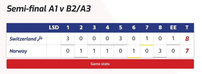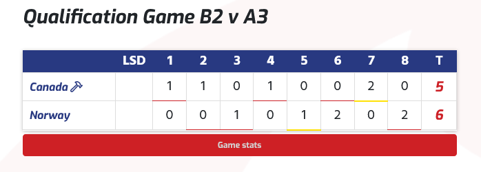 La Norvège a décidé d'utiliser son power-play au sixième end. Ils ont