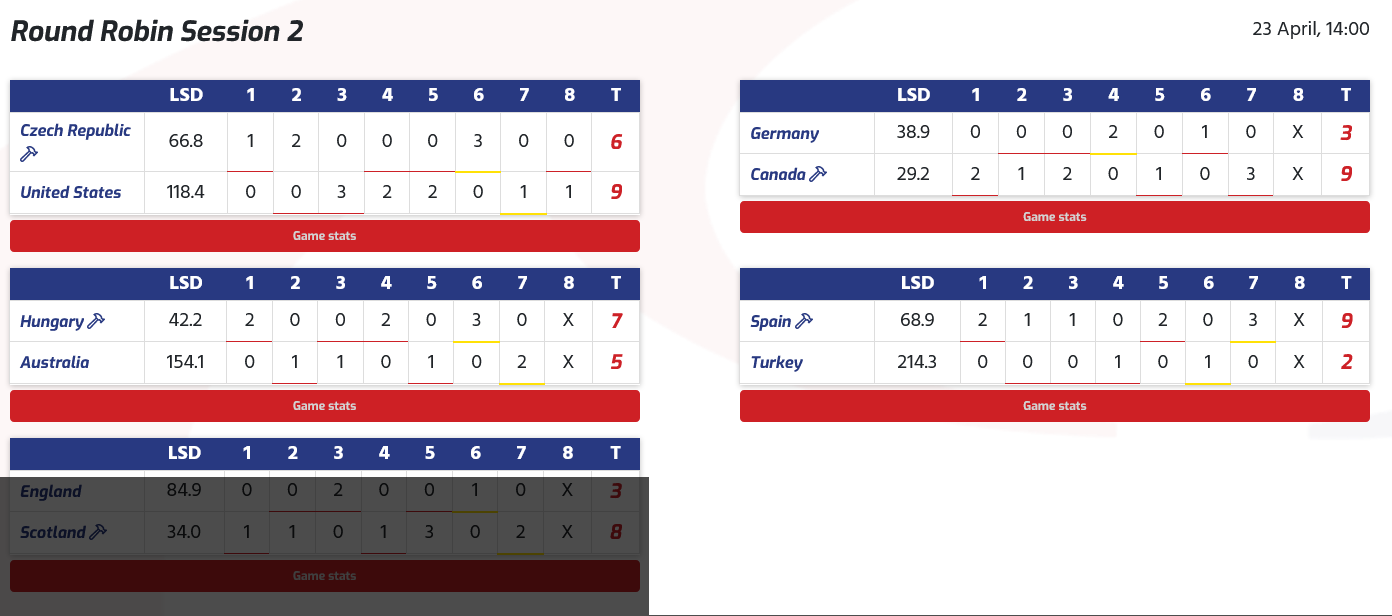 Après quatre volées, l'Écosse avait une avance de 3-2. Lorsque l'Anglaise