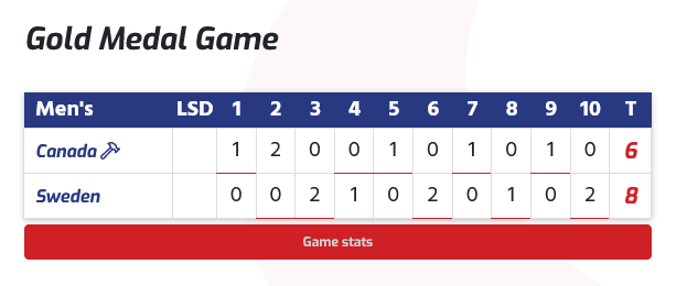 Au dixième end, la Suède avait deux pierres en position de comptage