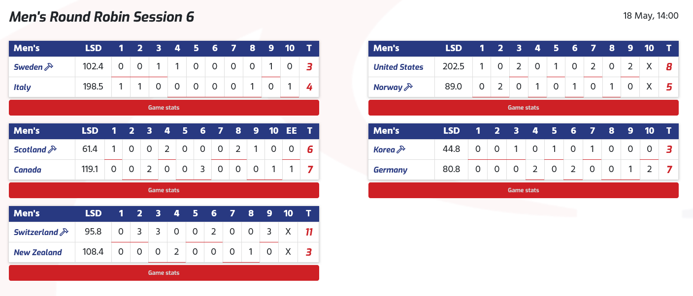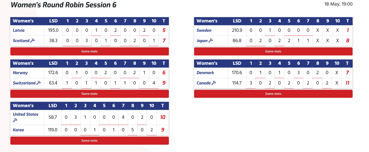 quatre sur le tableau. Après six end, le Canada détenait une avance de