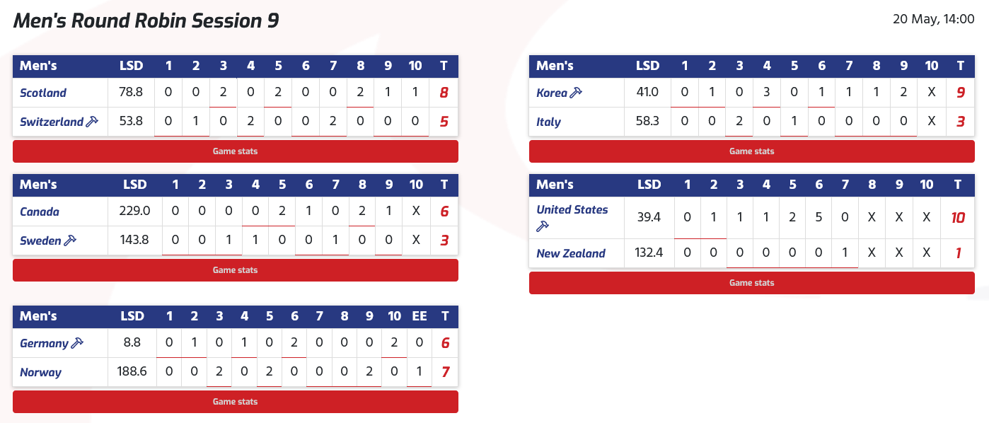 4-1 à la mi-temps, par 7-4 après sept ends et par 10-5 après neuf.