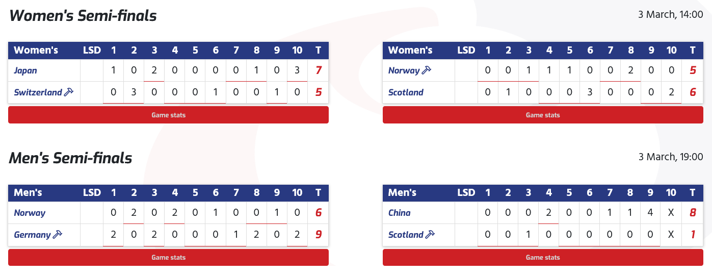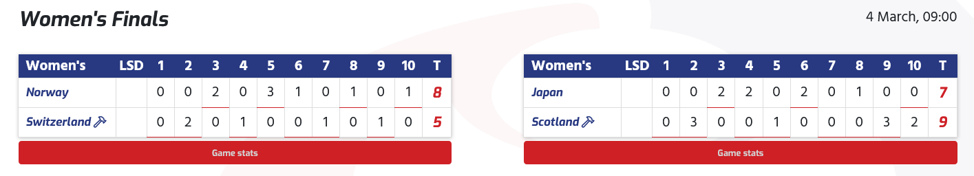 La Suède peut compter sa journée comme un gros succès après avoir battu l'Allemagne hôte 13-4 en six manches. Dans deux de ces ends, ellels ont marqué quatre points. La skip Moa Dryburgh nous donne son avis : « Il y a de très bonnes équipes qui jouent ici et nous devons continuer pour atteindre les play-offs. Nous avons eu du mal contre l'Ecosse hier et nous avons encore beaucoup à améliorer.
