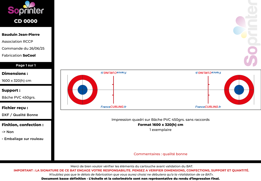 une bâche imprimable de 3.2 m de large et une longueur de 16 m, pour